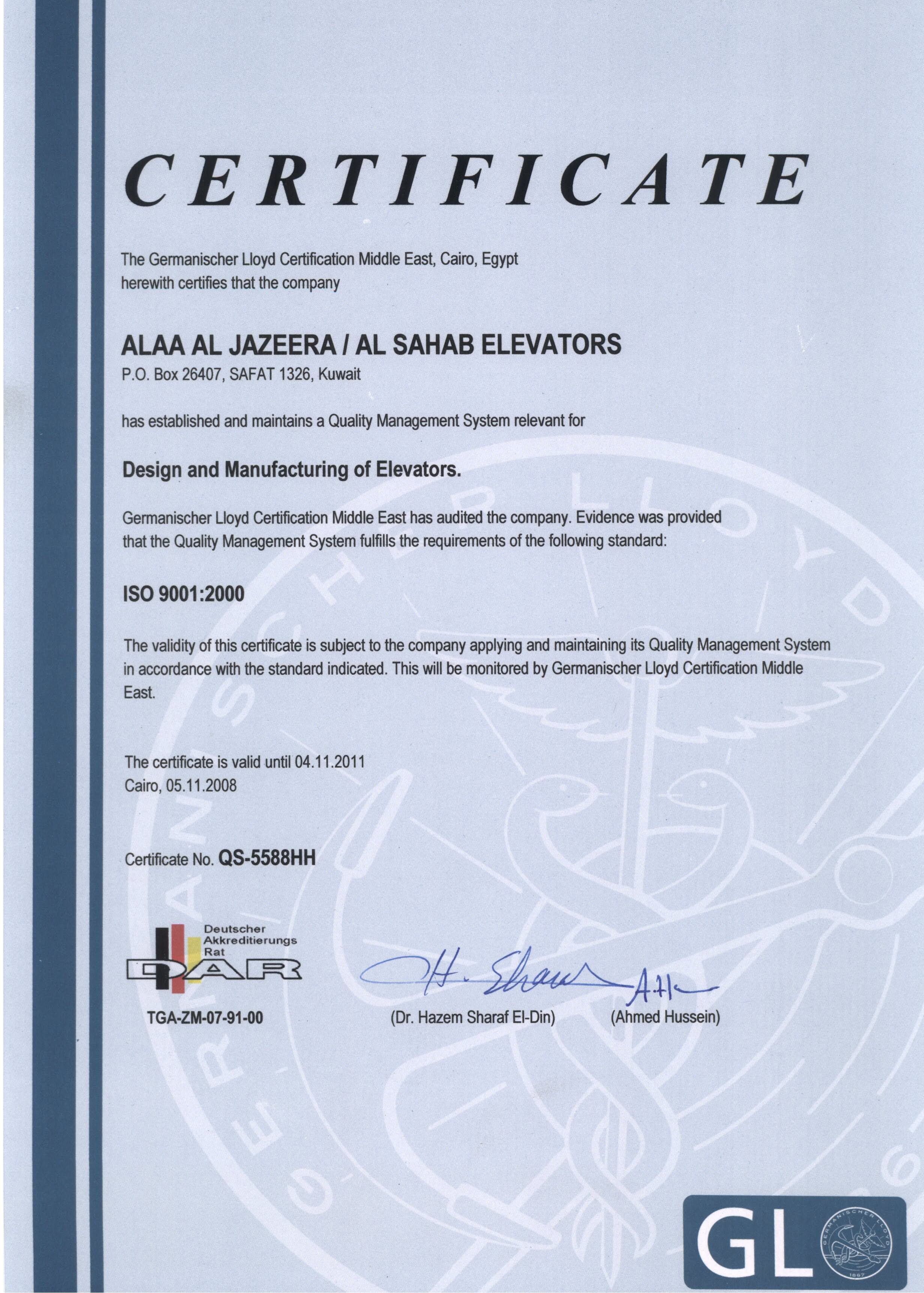 “Alaa Al-Jazeera Co.,” “CE” certified and an ISO 9001:2000 accredited company was established in the year of 1996. Since then company has been evolved a prominent elevator manufacturer in Kuwait.